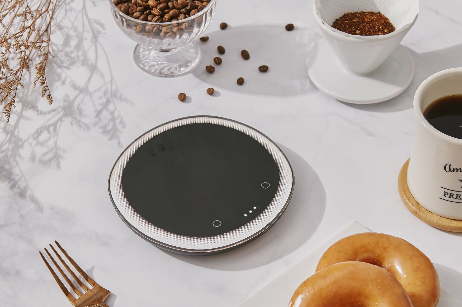 أول ميزان قهوة في العالم يقدم توجيهات ضوئية