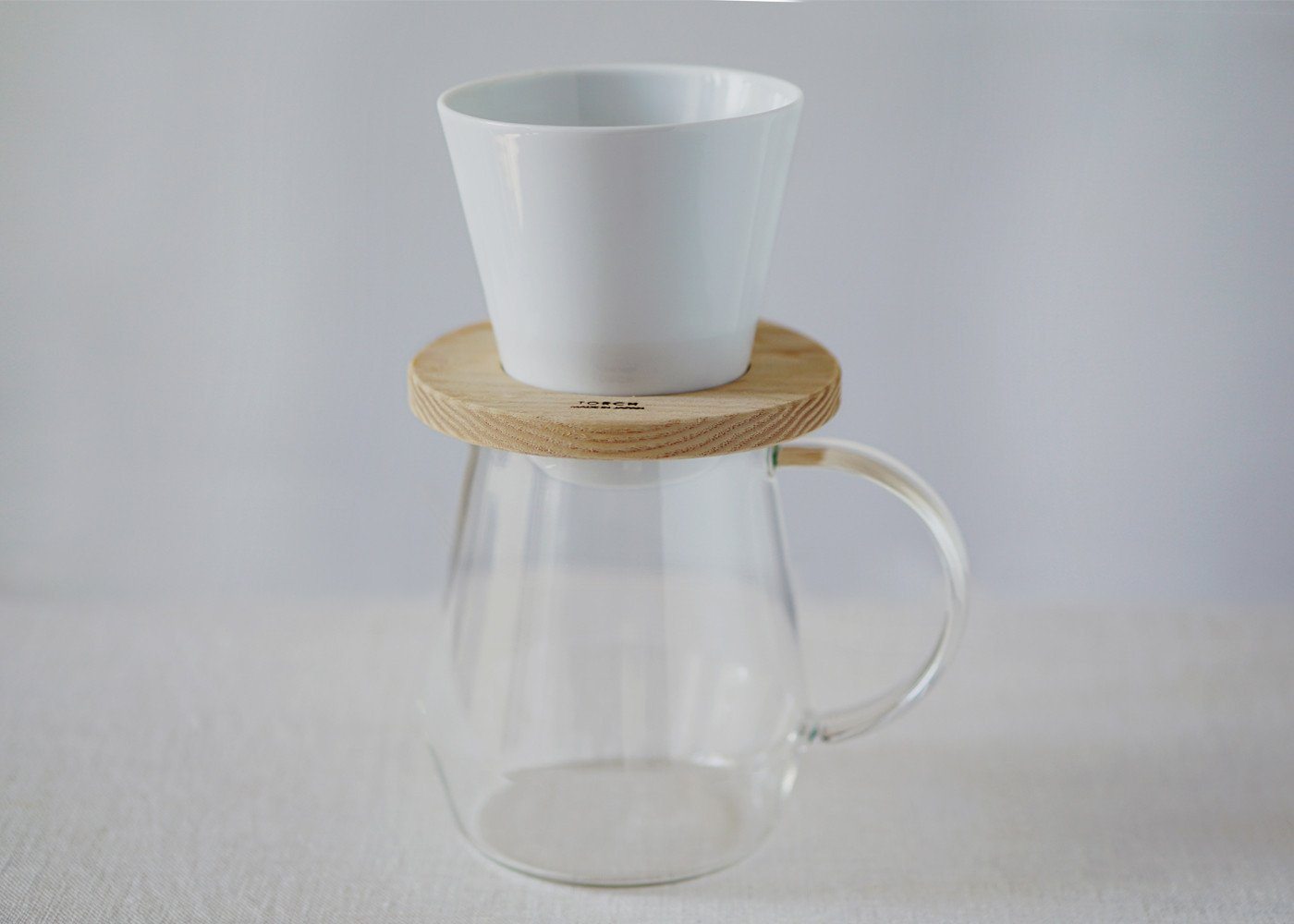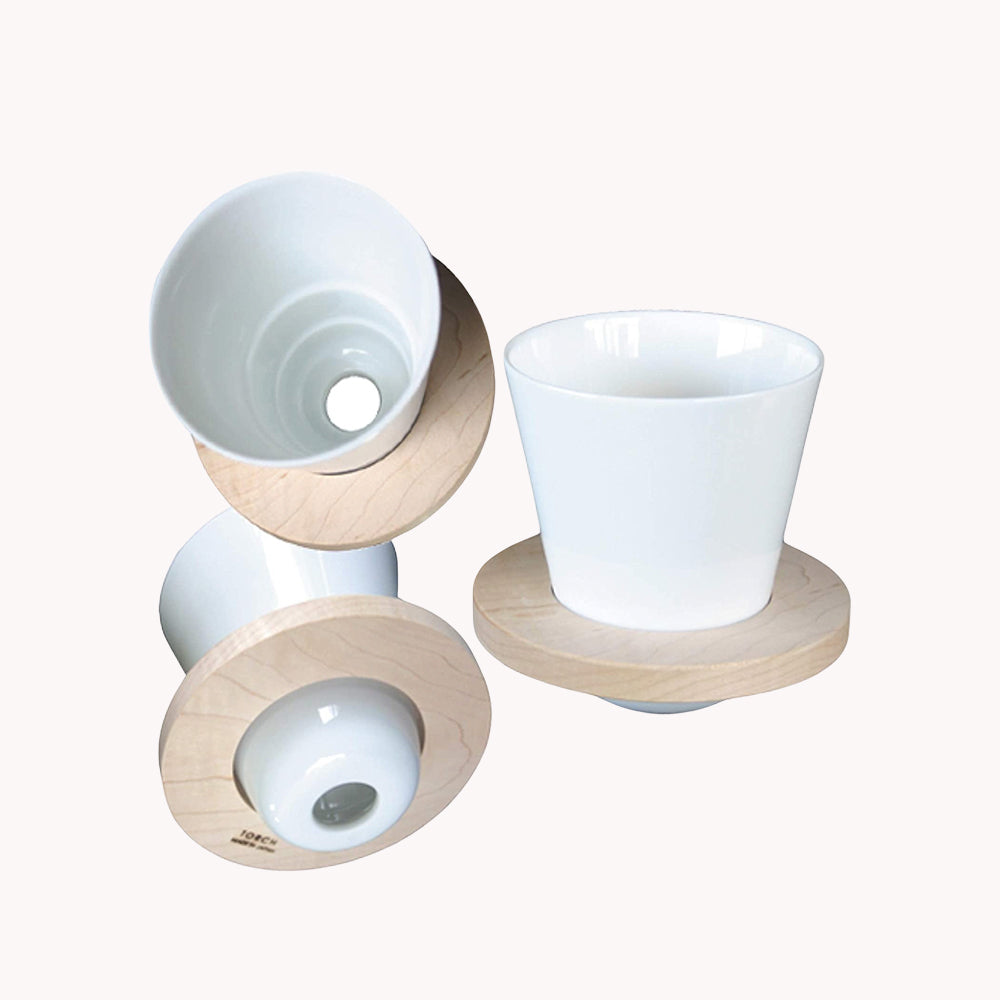 - أداة ترشيح من البورسلين بقاعدة من خشب المران الأبيض