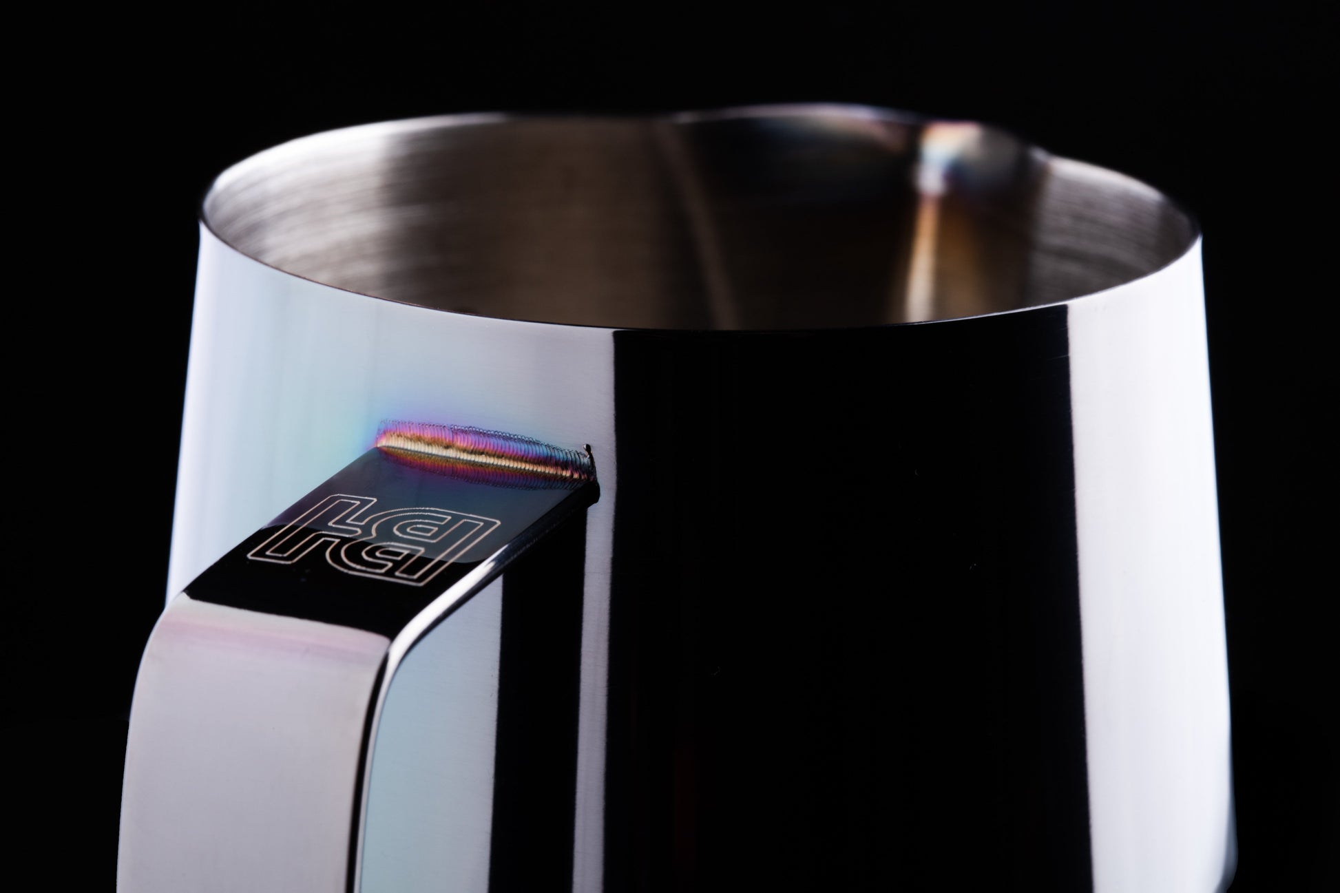 - مُصمم بأطوال دقيقة تجعل الإبريق مستقيم تمامًا. الفوهة مستقيمة، والمقبض مستقيم، وكل ذلك يأتي معًا لمساعدتك على تطبيق فن اللاتيه بشكل مثالي. محاذاة الفوهة والمقبض في حدود 1 مم – مما يتطلب فولاذ مغزول ومضغوط يمثل العديد من التحديات في الإنتاج.
