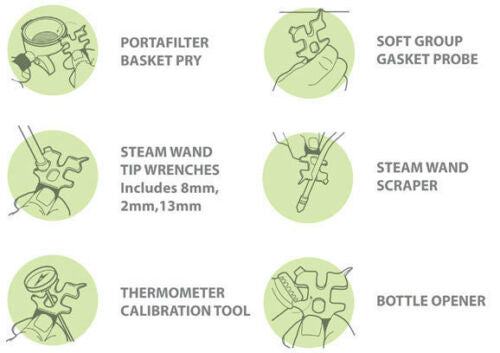 يعد مفتاح بالو كافيين عبارة عن أداة باريستا متعددة الوظائف. يتميز بالعديد من الاستخدامات المفيدة وبقدرته على التعامل مع معظم التعديلات الروتينية لآلات الاسبريسو.