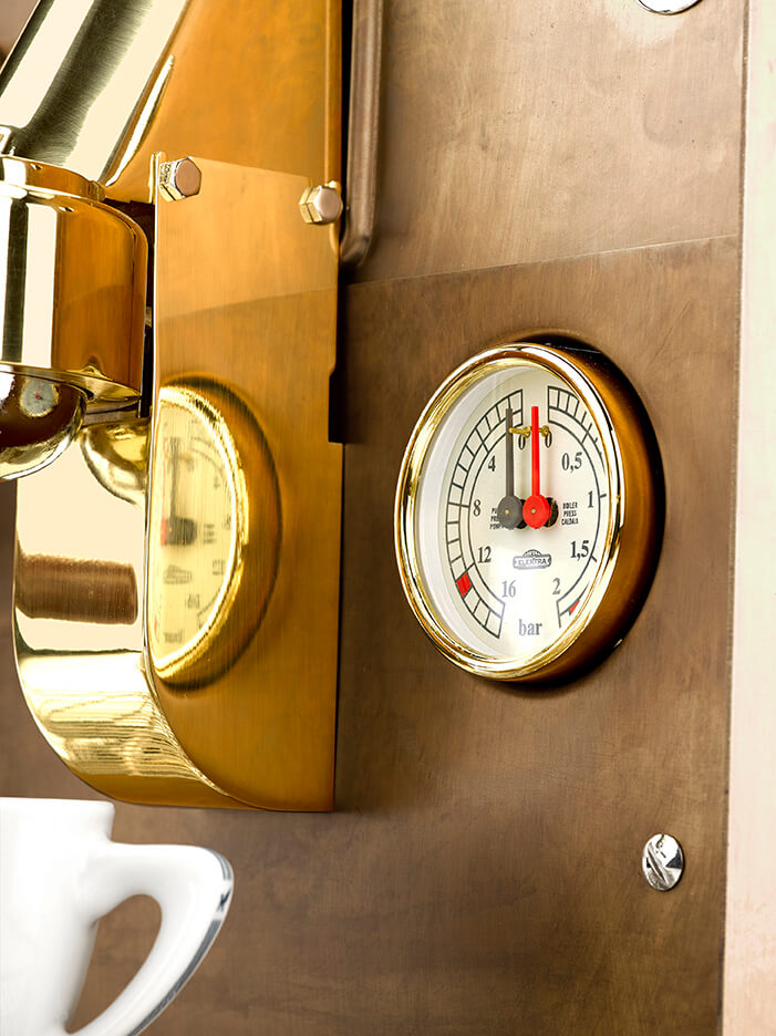 The compact coffee maker Sixties is a small espresso machine of very compact dimensions obtained through a design study aimed at containing the overall dimensions. Ideal for ice cream shops, bars and small cafés. Fitted with oxidized brass with delivery groups in polished brassd. A perfect mix of finishes of high quality, valuable metals and maximum reliability. The advanced technology makes you able to obtain a superb quality coffee all day long, giving to your clients the real Italian espresso.