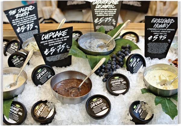 بدأت العلامة التجارية LUSH لمستحضرات التجميل المصنوعة يدويًا في عام 1994، وتستخدم مكونات طازجة لصنع منتجاتها. تعد الشركة التجميلية مستوحاة من أسواق المواد الغذائية وبالتالي تسعى لتوفير تجربة تسوق متميزة في متاجرها. تعد LUSH فريدة من نوعها في إنشاء صورة علامتها التجارية - فهي تروج لمنتجاتها بألوان زاهية ورائحة حلوة، علاوة على ذلك، تدّعي أنها شركة أخلاقية من خلال قيادة العديد من الحملات.